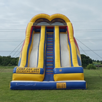 Take your event to new heights with our 24FT Double Drop Slide inflatable! Featuring a thrilling double-drop design and vibrant colors, this inflatable is ideal for birthday parties, school events, and community gatherings. Kids and adults alike will love the excitement and energy it brings. Our inflatables are thoroughly cleaned and maintained to ensure safety and reliability. Reserve the 24FT Double Drop Slide today and create unforgettable memories! |