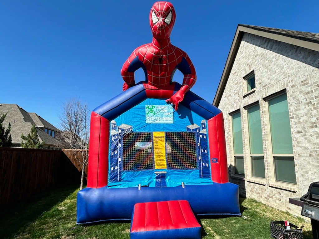 Swing into superhero fun with our Web-Man inflatable — a bold red-and-blue bounce house inspired by everyone’s favorite web-slinger! Perfect for birthday parties, school events, and neighborhood block parties across Frisco, Prosper, and surrounding North Dallas suburbs. Why parents love it: